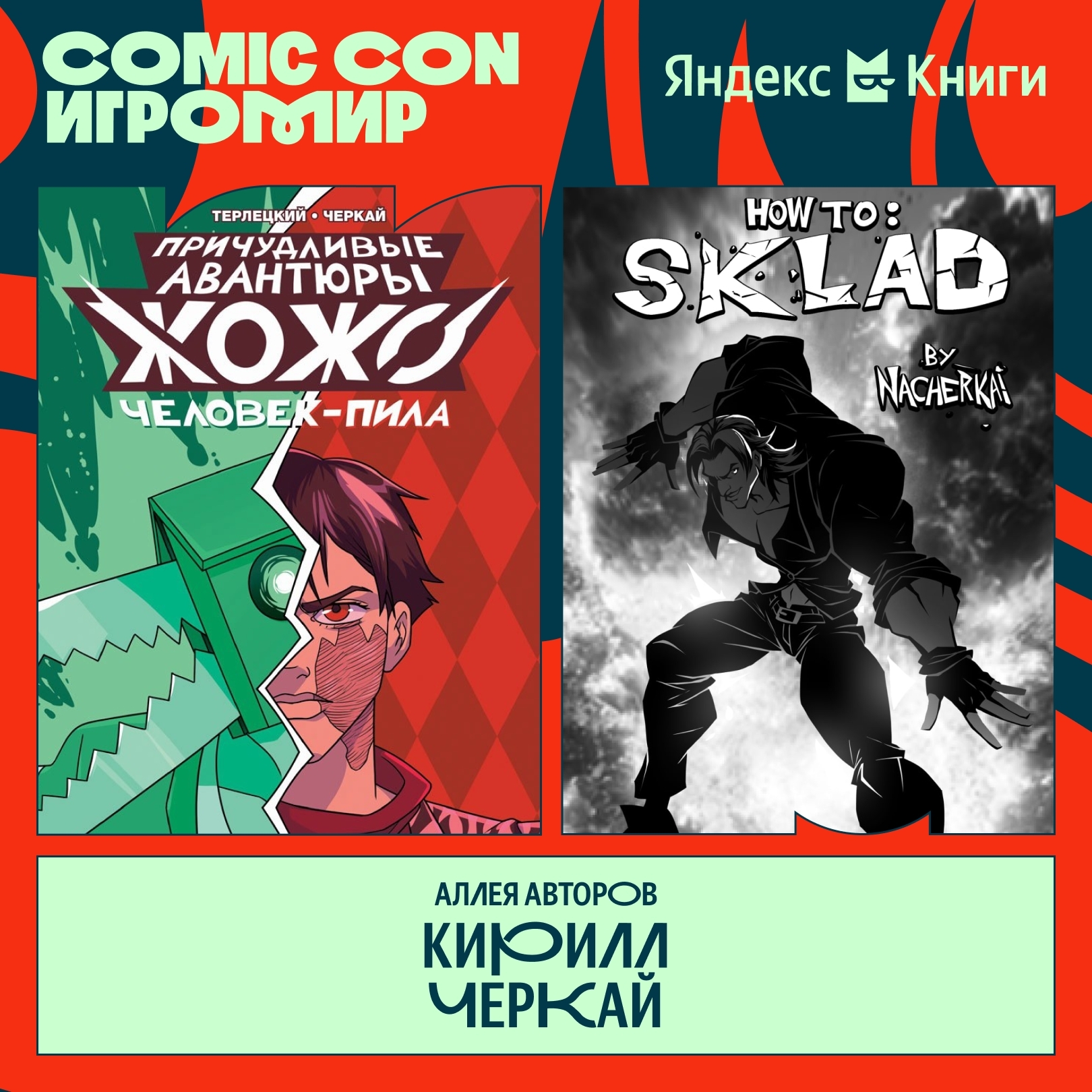 Кирилл Черкай — независимый художник-комиксист, прежде всего известный по работе над серией «Причудливые Авантюры Жожо» в соавторстве с Виталием Терлецким. Эксклюзивно для фестиваля уже подготовил тираж небольшого, но эпичного зина про работу на складе комиксов.
